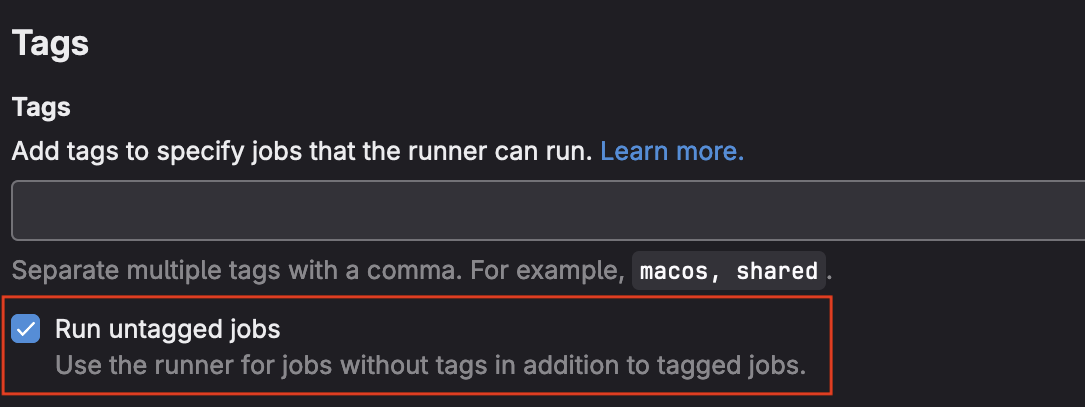 Run untagged jobsbox if you would liek your runner to be the default for all jobs.
